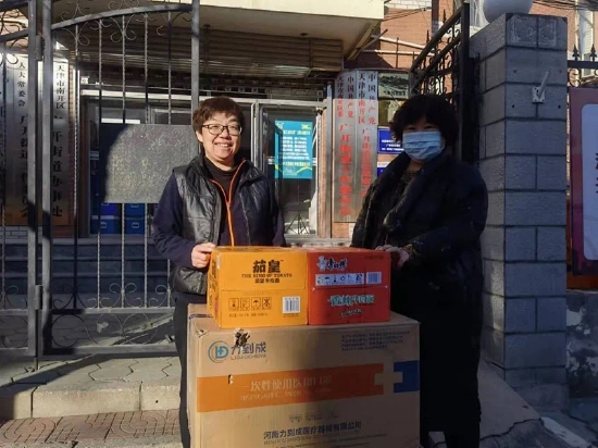 2021年1月14日 给心羽基金会送去发热暖手霜500 支,价值14000 元。帮助一线人员身体驱寒除湿、舒筋活络、活血化瘀。(来源:天津市女企业家协会)