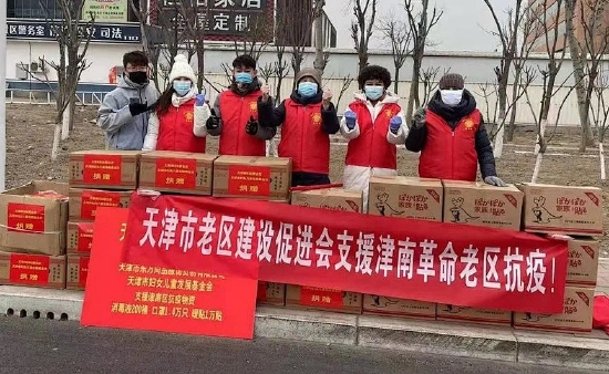 1月9日通过承德商会率先向疫情最严重的津南区捐赠1万元;1月12日向河西区友谊路街、马场道街捐暖宝宝4200贴;1月13日采购暖宝宝1000贴、加热帽100顶、手套100副、热水壶24个,送到空港名都花园社区党群服务中心,物资折合人民币超过1万元。