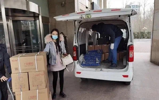 为津南一线的医护人员捐赠了1万贴暖贴、1.4万个口罩、200桶消毒液。