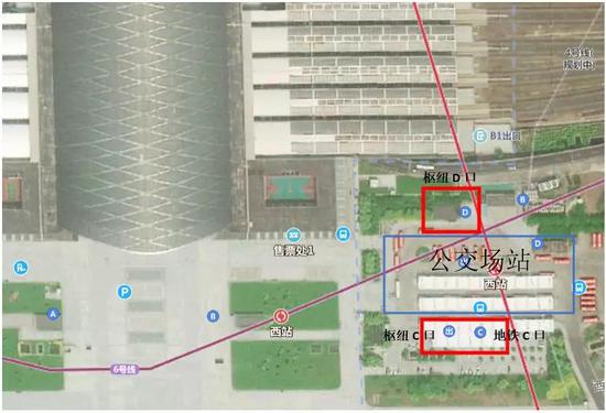 图1:地铁西站C口,西站枢纽C、D口鸟瞰图