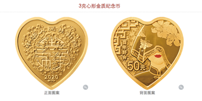 因为心形纪念币特殊的形状,有网友打趣称有理由怀疑这是“祖国在催婚”,这套心形纪念币也频频登上热搜。