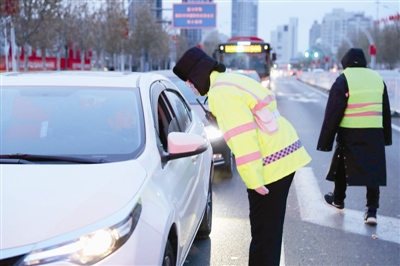 从12月28日夜间起,“霸王级”寒潮天气来袭,津城一夜进入速冻模式,经历了断崖式降温。道路沿线的交警和辅警们化身“冻人风警”,他们仍然在天还未亮的清晨时分准时上岗,为平安出行疏堵保畅。