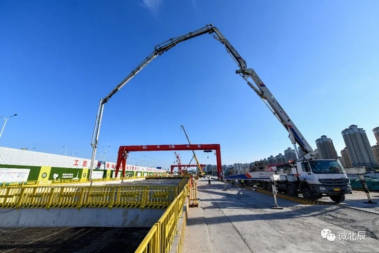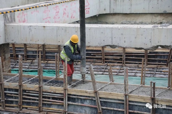 在柴楼站北基坑,随着最后一块顶板浇筑完成,柴楼站北基坑主体结构宣告竣工。从2021年七月底主体结构开工以来,施工单位克服车站主体结构复杂、冬季施工的不利因素等困难,精心组织施工,各工序交叉作业,高质高效地完成了建设任务。