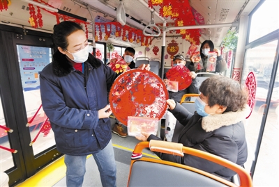 春节将至,市公交集团第一客运有限公司刘园车队734路驾驶员刘靖为了烘托节日气氛,精心打造了春节便民主题车厢,并在25日“小年”这一天为乘客送上新春防疫礼包,让乘客在乘车途中感受浓厚年味。