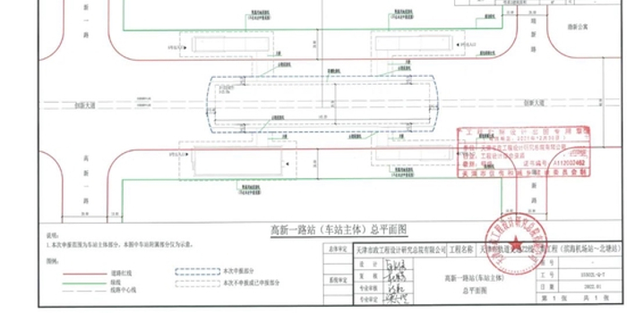 项目简介:天津市轨道交通Z2线一期工程(滨海机场站~北塘站)-高新一路站(车站主体),本次申报范围为高新一路站(车站主体),位于天津市海洋高新区,东至:瑞新路、南至:空地、西至:高新一路、北至:空地。高新一路站(车站主体)为地上三层侧式车站。车站总长 (罩棚外包尺寸)154.05m,宽 31.2m(罩棚外包尺寸),高 23.50m,站台长度为 140m,侧站台宽度为 9.35m。本次申报面积8824.235㎡。