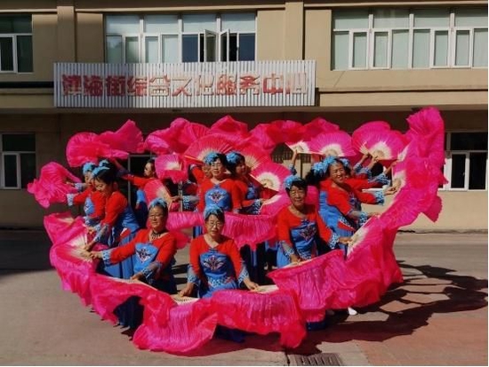 “我和我的祖国,一刻也不能分割,无论我走到哪里,都流出一首赞歌……”这时,健身广场上传来一阵阵悦耳动听的歌声,只见舞蹈队的老人们穿着统一的服装,排好队形,伴随着歌声翩翩起舞,引来了不少村民围观喝彩。