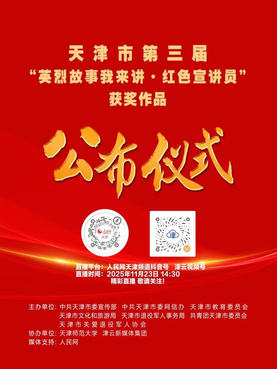 明日14:30直播预告|天津市第三届“英烈故事我来讲·红色宣讲员”获奖作品公布仪式敬请