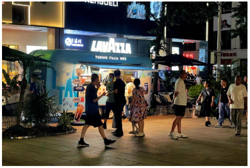 暑假期间,在王府井步行街丹耀大厦西门,一辆独具意式风味的蓝色咖啡车一经亮相便吸引了来往路人的注意。这是意大利LAVAZZA拉瓦萨品牌咖啡车在京首秀。咖啡车每天上午10点开始白天时段经营,为充分助力夜经济发展,特意增加并延长了夜间经营时段,直至22点才打烊。