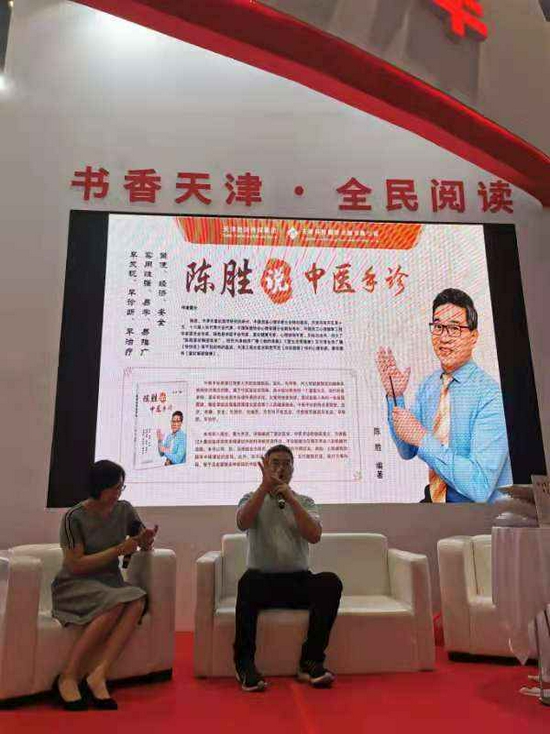 作为天津出版传媒集团展团成员之一,天津科技翻译出版有限公司展出新书、畅销书共计百余种。7月16日,中医手诊专家、掌纹健康专家、心理咨询专家、天津市掌纹医学研究所所长陈胜携新书《陈胜说中医手诊》与读者见面,分享新书编写过程,讲解中医手诊知识(上图)。陈胜多年来致力于中医手诊研究,《陈胜说中医手诊》一书汇集了作者多年的临床经验,详细阐述了掌纹医学、中医手诊的临床意义,受到广大读者的喜爱。陈胜现场针对中医手诊、主要掌纹病理意义、常见病的中医手诊与治疗等相关问题与读者交流。活动受到欢迎,很多读者现场咨询中老年常见病的手诊表征及预防方法等,陈胜耐心作答。