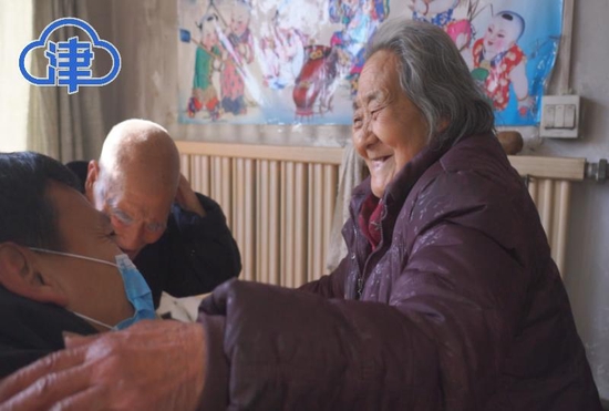 “手还挺热乎,92岁了哈,高寿高寿。”