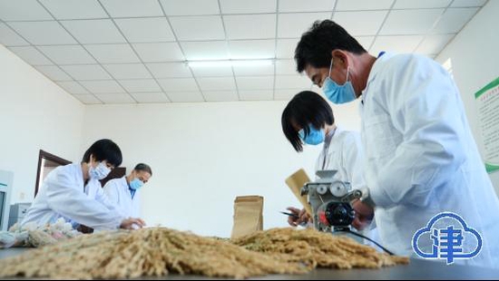 在天津市优质农产品开发示范中心育种实验室,桌上摆放了一束束金黄色的小站稻穗,谷粒颗颗饱满。大伙忙着考种、脱粒,再将不同品种的种子按顺序装进纱袋,这两天,纱袋就会整体放入药剂中浸种,为春播做准备。