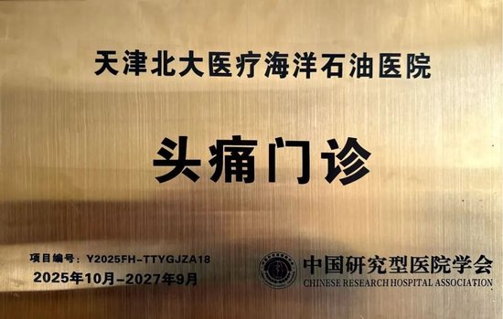 北大医疗海洋石油医院获批“中国头痛防控基地及体系化建设单位”