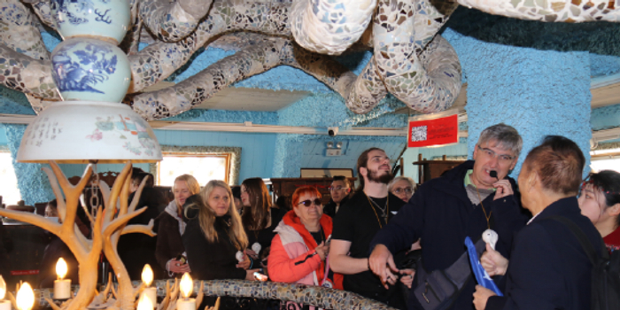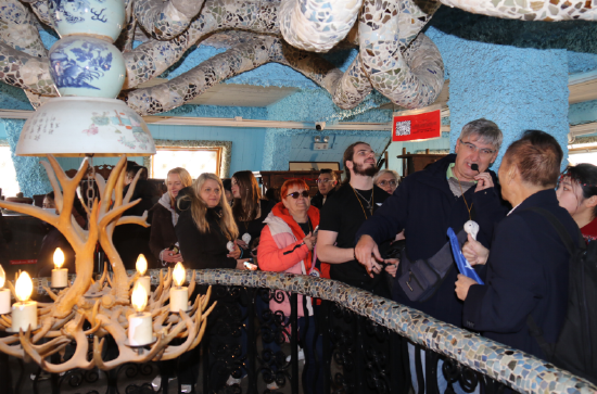 2月18日,和平区赤峰道上的瓷房子格外热闹。屋檐下红灯笼高挂,“福” 字与春联相映成趣,屋顶盘旋的古瓷龙在春日暖阳下熠熠生辉携程。来自欧洲的外国友人刚踏入景区,就被这座 “瓷美楼奇” 的建筑奇观所吸引,纷纷驻足拍照留念。