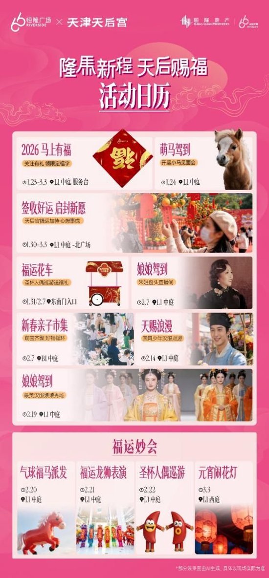 这个新年,我们诚邀您走进天津恒隆广场,感受传统与潮流的巧妙交融,体验一场有文化、有温度、有玩趣的城市级新春盛会。让我们在妈祖福运的陪伴下,汲取祝福的力量,以“隆马精神”共赴新年新程。