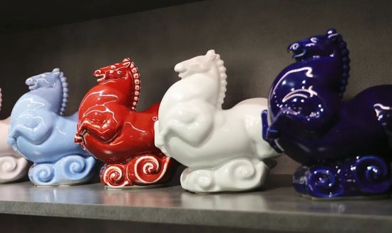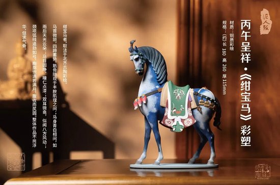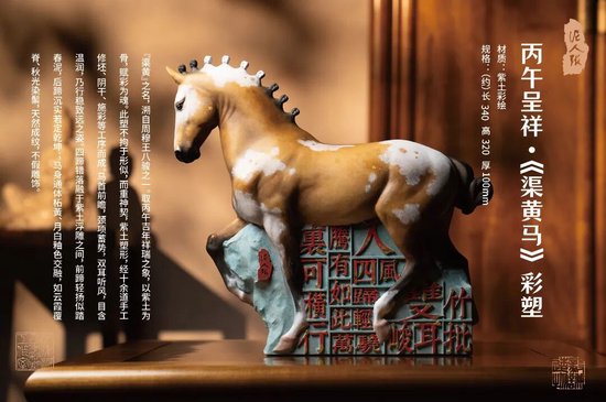 好物介绍:包括《绀宝马》、《渠黄马》、《祥瑞天驹》。作品分别取材唐代《舞马图》、周穆王八骏图、北齐古陶彩绘。值此丙午吉年,以紫土为骨,赋彩为魂,塑东方骏马,寓意马到成功。