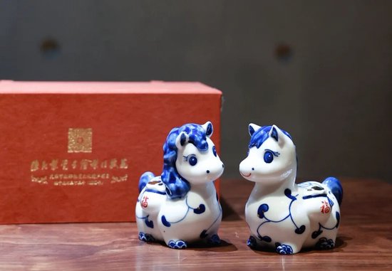 好物介绍:生肖瓷“幸福佳马”,寓意幸福加码。设计灵感源于故宫馆藏宋白釉瓷马,造型圆融可掬,饰以青花缠枝莲纹与龙鳞纹,寓意龙马精神。马身驮福袋与金元宝,象征福运双至。作品分小骐(女)与小骥(男)两款,合称“骐骥”,谐音“奇迹”与“契机”,寄寓事业腾达、好运临门。