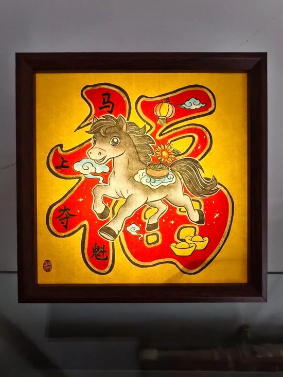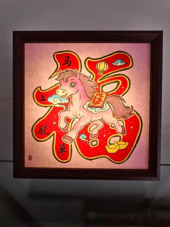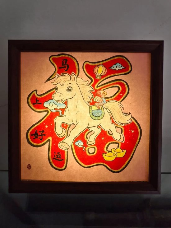 好物介绍:马年献瑞系列小夜灯。骏马背上驮钱袋奔跑,表达财到我家,马上暴富的美好愿望。年画小夜灯的开发运用赋予了传统年画新的生命力。