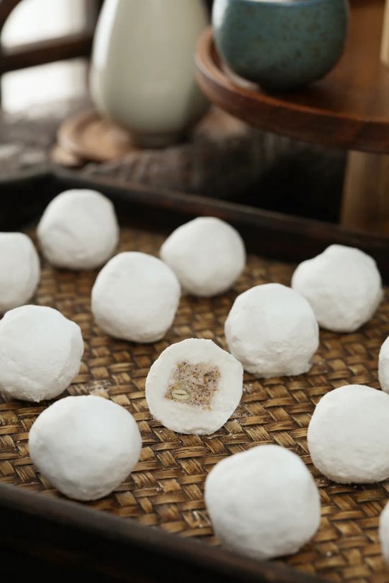 好物介绍:“刘氏石磨元宵”取用汇聚地脉灵气的盘山花岗岩石精凿而成的石磨。经此石磨碾磨出的江米粉,能够均匀的拉长江米粉的纤维,很完整的保留江米原有的营养成分,将江米的‘糯’和‘黏’展现的淋漓尽致。再以传统制作技艺摇制而成,元宵外观色泽洁白,有如天成。承载津门百年饮食智慧,是农耕文明“春祈秋报”的活态缩影。石磨象征“天圆地方”,摇制工艺暗合岁时节律,元宵食用寓意团圆美满。