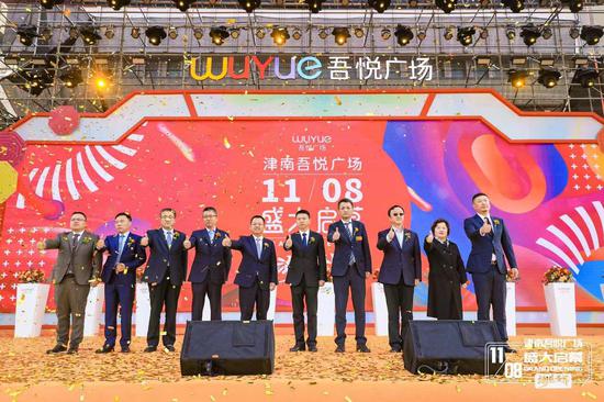 出席开业盛典的有新城控股集团联席总裁陈德力、华润万家京津公司党委书记总经理黄欣、新城商业管理集团副总裁胥建新、天津津南吾悦广场商业开发总经理郑福权、天津津南吾悦广场商业管理总经理张艺霖,以及星轶影城、优衣库、周生生、CNC、GF.FERRE、阿迪达斯、滔博体育、海底捞、多奇妙、玩具反斗城、宝胜道吉、华为、小米、李宁、安踏、D.SIGN、IRA、森林鸟、大渔、白鹿原、吉祥春饼等百余位品牌嘉宾和天津的主流媒体。